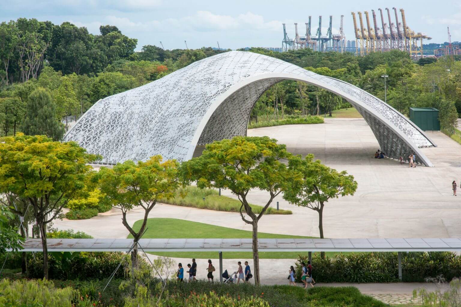 The pavilion, now known as the SG50 lattice, comprises 11,000 unique aluminium panels with varying degrees of perforation to best suit its location in Gardens by the Bay, taking into account the prevailing wind direction and path of the sun.