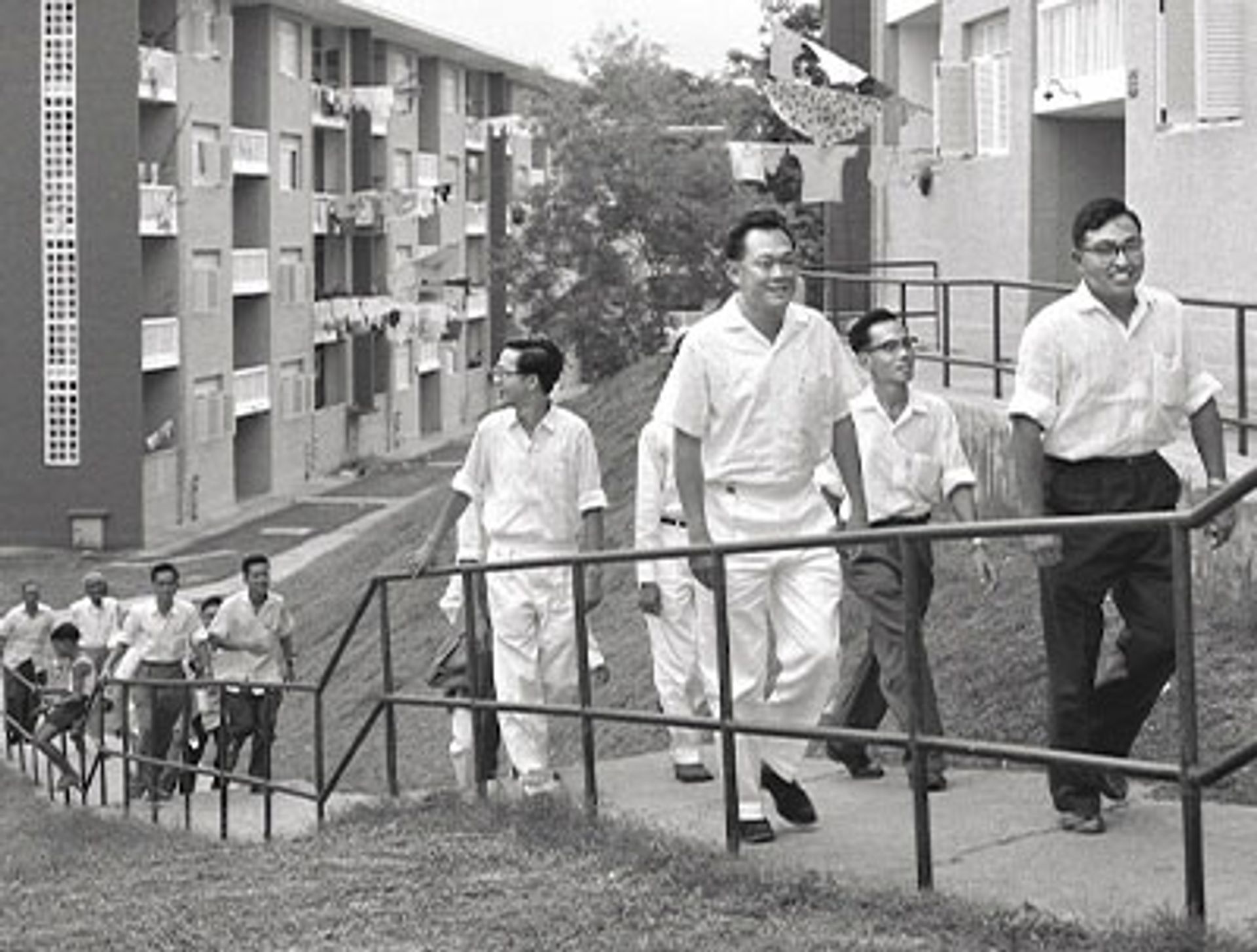 A time-starved Mr Lee often took his family along to events on weekends. He is seen here with younger son Hsien Yang on his shoulders, Mrs Lee (in hat and sunglasses), Hsien Loong (in front of Mrs Lee) and Wei Ling (partially hidden) during a constituency visit. Source: Lee Kuan Yew