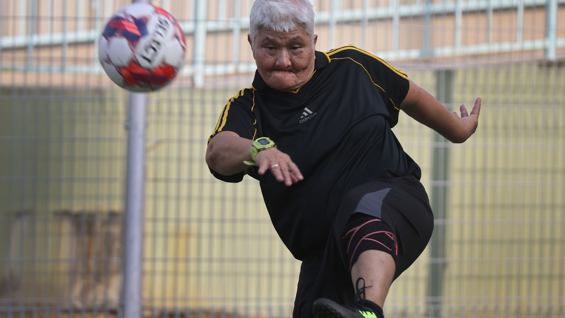 Today, even at the age of 67, she continues to play a modified version of the beautiful game.