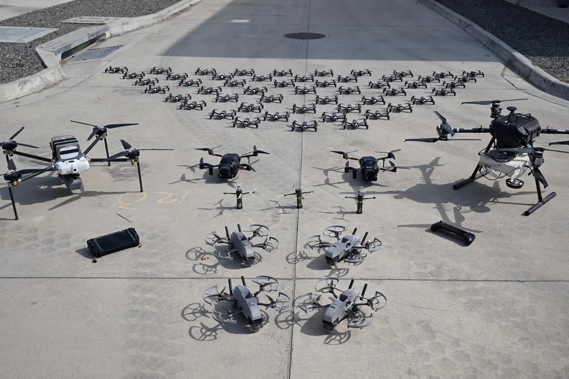 Various drones on display during the drone ops field trial day during XWB on Oct 25, 2025