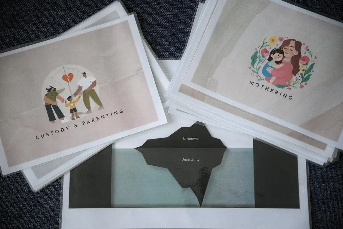 During counselling sessions, Ms Ng invites women to select cards – from a toolkit developed with the Singapore Institute of Technology – that resonate with their experiences, using these as conversation starters to explore their concerns, priorities and next steps.
