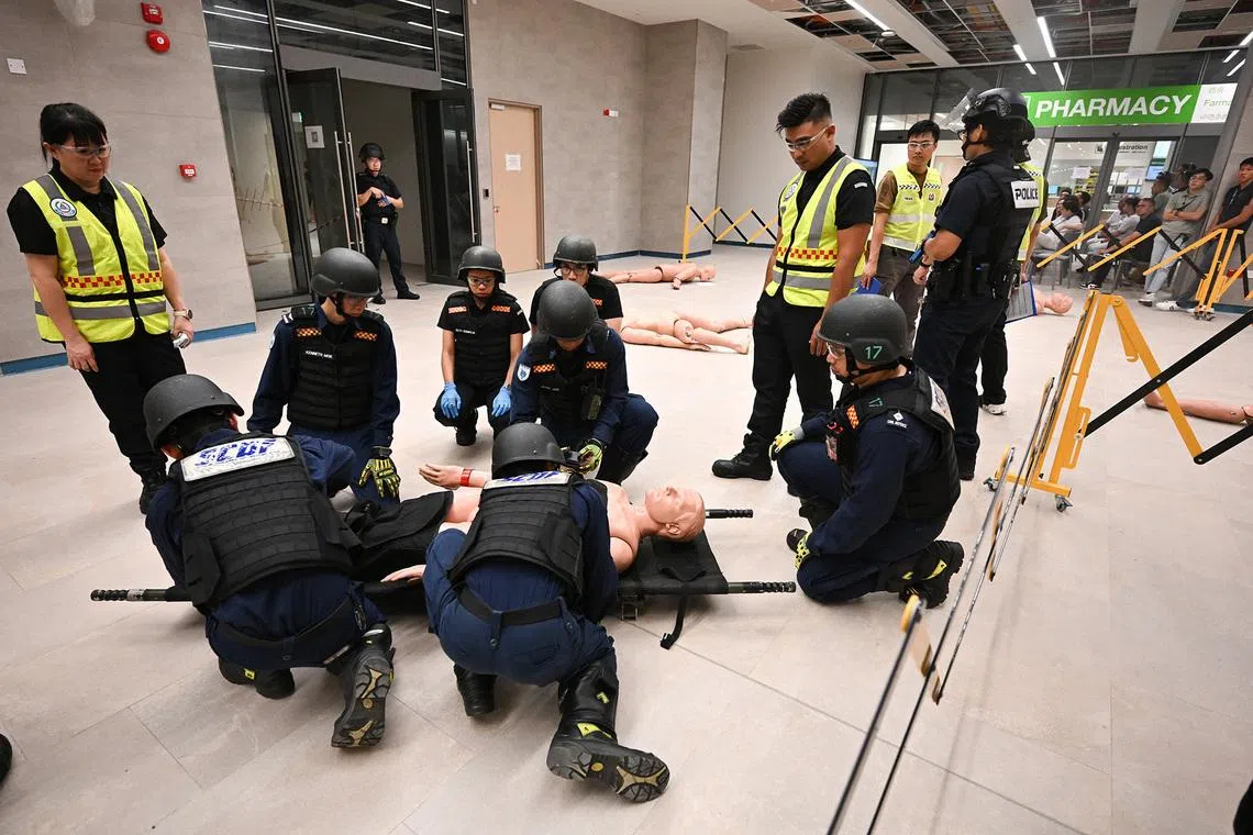 More than 140 officers and staff from the Singapore Police Force, Singapore Civil Defence Force and SGH were involved. It was the first inter-agency public security exercise held at SGH where scenarios such as a gunman attack were played out.