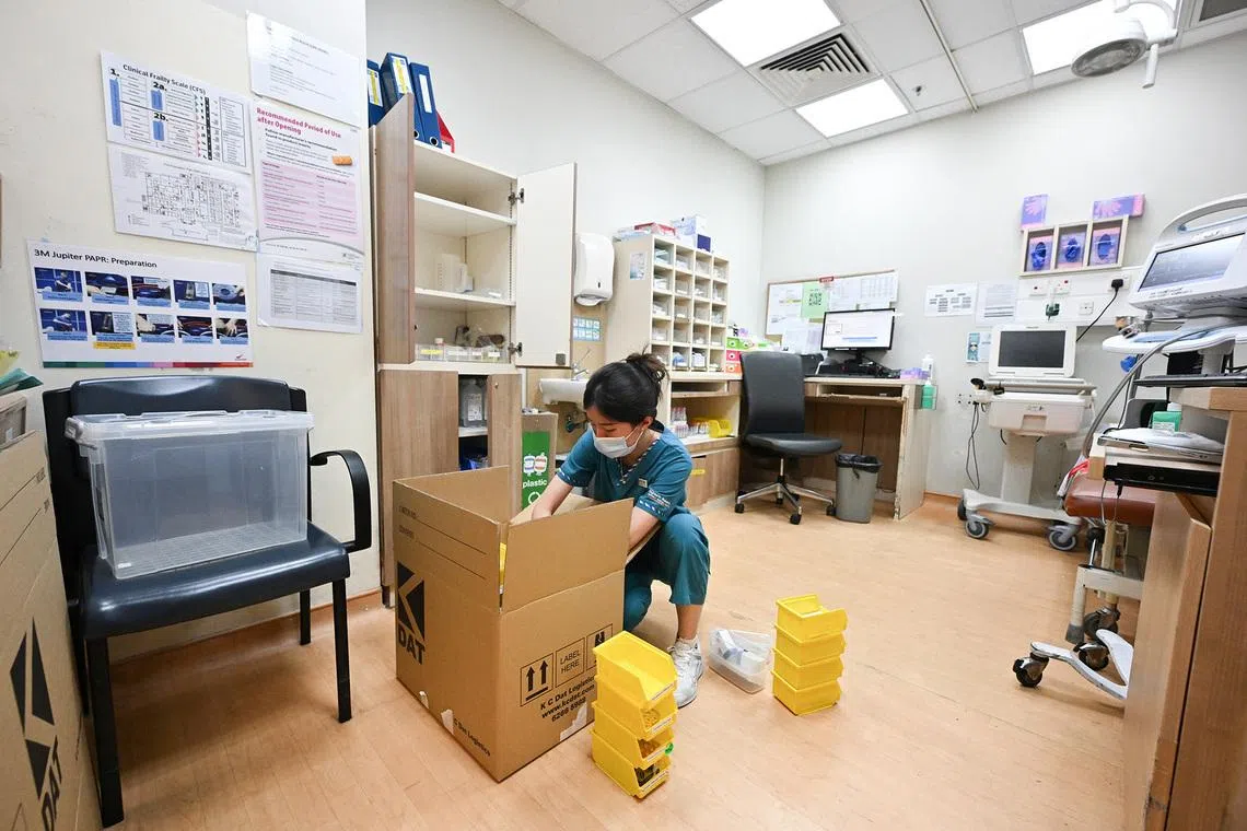 Assistant nurse clinician Muhammad Hanafi Mohd Ali, 35, packing medical supplies at the old emergency department at Block 1 of Singapore General Hospital on Jan 17, 2026.