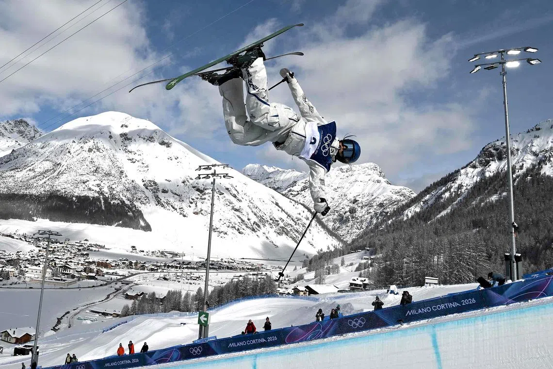 Chinese-American freestyle skier Eileen Gu warming up before the women’s freeski halfpipe final at the Milano-Cortina Olympics at Livigno Snow Park. She went on to win the gold medal for the event.