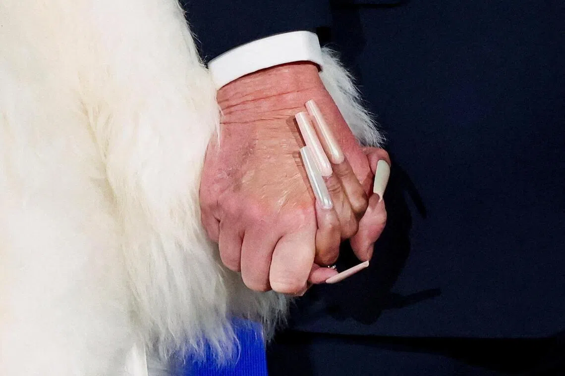 US President Donald Trump and rapper Nicki Minaj holding hands on stage at the US Treasury Department's Trump Accounts summit in Washington.