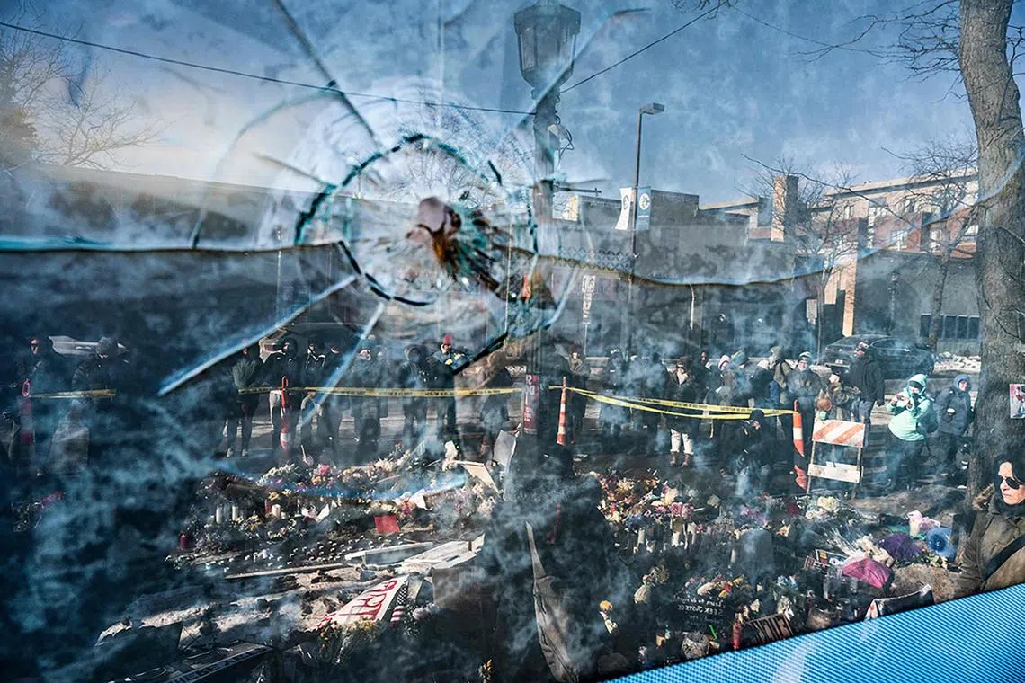 A window pane with a bullet hole in front of a makeshift memorial for Alex Pretti in Minneapolis, Minnesota. On Jan 24, US Immigration and Customs Enforcement (ICE) agents shot and killed Mr Alex Pretti, a 37-year-old ICU nurse in Minneapolis, just weeks after an ICE agent shot and killed Ms Renee Good, also 37, in her car.