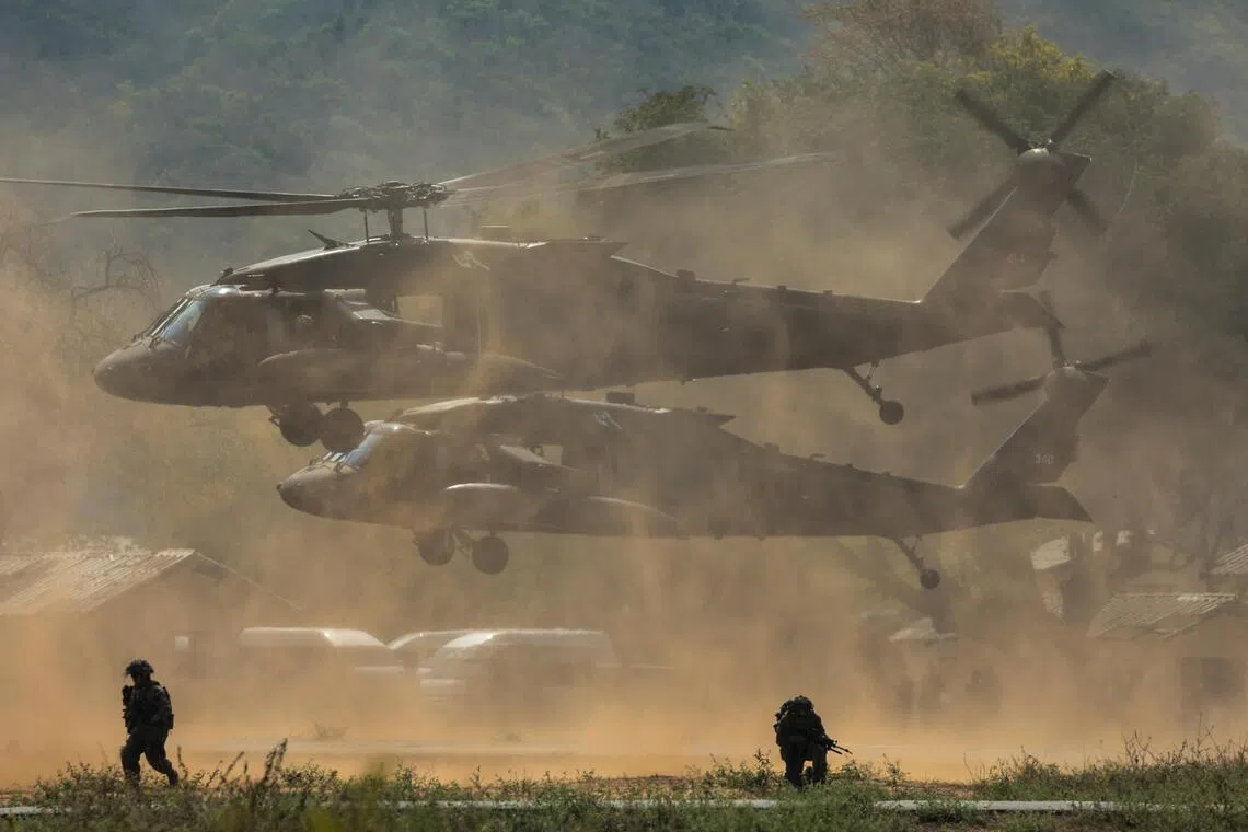 US marines participating in an amphibious assault exercise as part of the Cobra Gold 2026 joint military exercise at a military base in Chonburi province, Thailand.