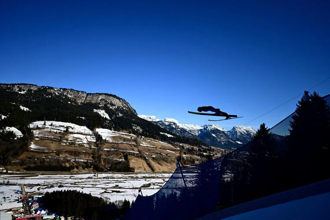 Finland's Ilkka Herola in action during the Nordic Combined trial round of ski jumping at the FIS Ski Jumping World Cup in Kulm, Tauplitz, Austria.