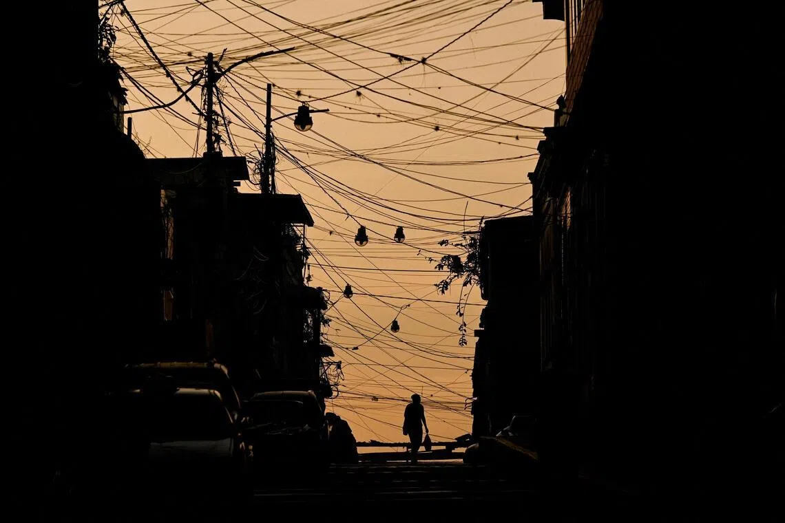 A woman walking along a street in Caracas, Venezuela, as the sun sets.