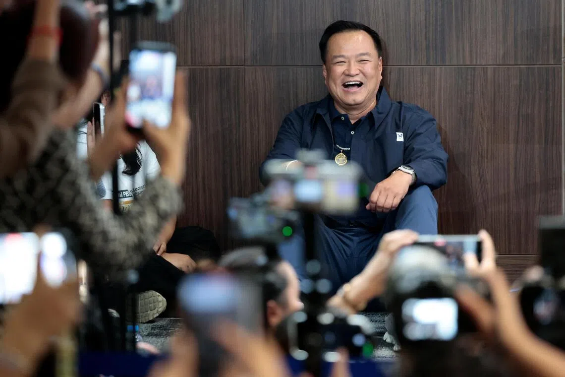 Thailand's caretaker Prime Minister Anutin Charnvirakul, the Bhumjaithai Party leader and prime ministerial candidate, at the party’s headquarters on the evening of the general election, as the preliminary vote count shows his party taking the lead, in Bangkok, Thailand.