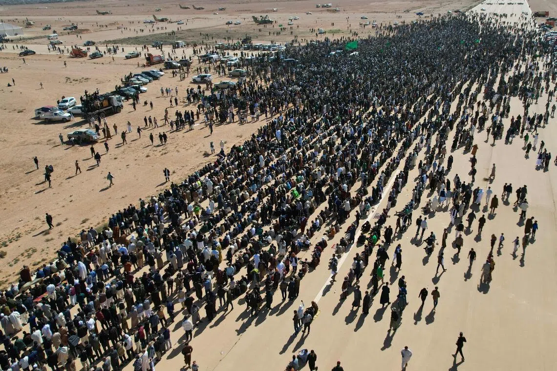 Libyans gathering for the funeral of Seif al-Islam Gaddafi, the son of Libya's late long-time ruler Muammar Gaddafi, in Bani Walid in western Libya. Seif al-Islam, 53, had been seen by some as his father's successor, despite being targeted by a warrant from the International Criminal Court for alleged crimes against humanity. He was killed by gunmen who stormed his home in western Libya's Zintan.