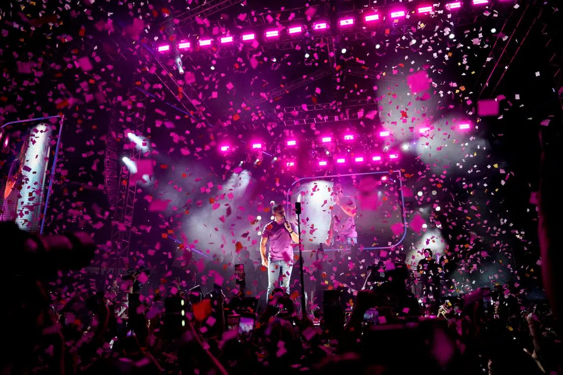 Ecuador's President and presidential candidate for reelection, Daniel Noboa, addressing their supporters during his closing campaign event for the upcoming presidential election, in Guayaquil, Ecuador on April 10, 2025.