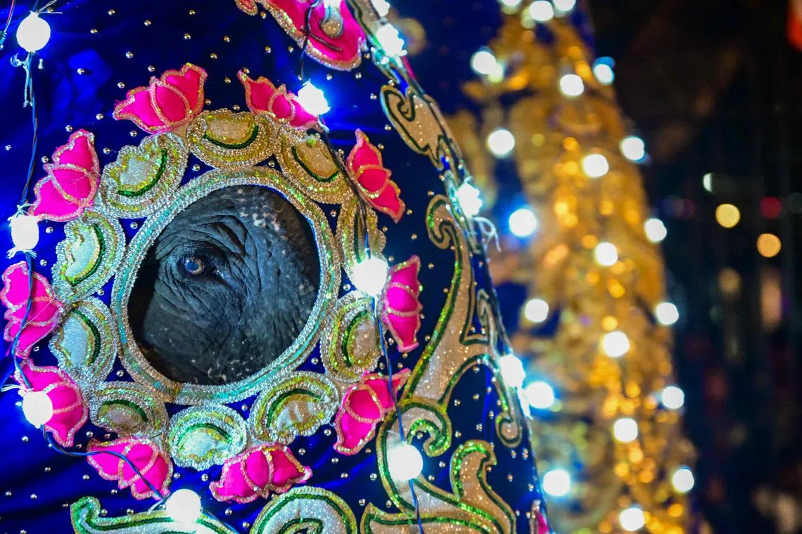 A decorated elephant, pictured at the historic Buddhist Temple of the Tooth, as part of celebrations to mark the Buddhist festival of Esala Perahera, in the ancient hill capital of Kandy, Sri Lanka, on Aug 8, 2025.