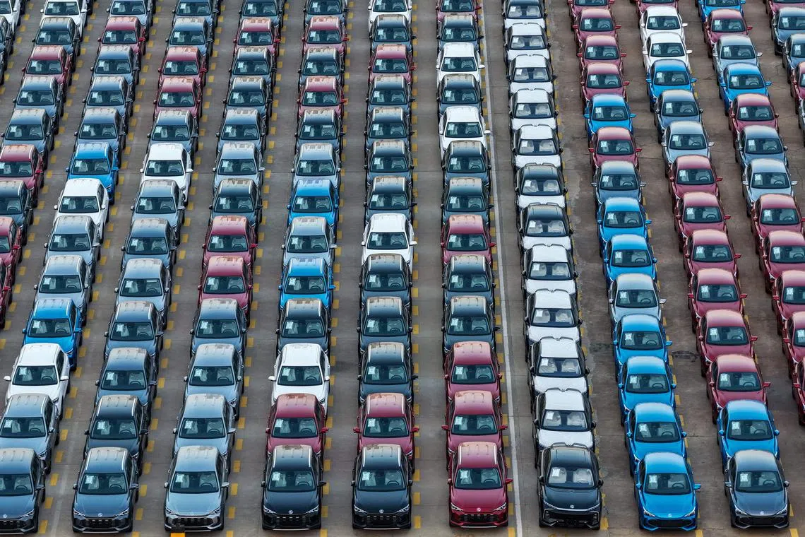 Hundred of new MG vehicles parked at a port in Lianyungang, in China’s eastern Jiangsu province, on Aug 19, 2025.