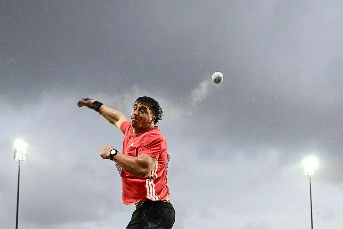 US athlete Leonardo Fabbri competing in the men's shot put event of the IAAF Diamond League athletics meeting “Athletissima" at Stade Olympique de la Pontaise in Lausanne, Switzerland, on Aug 20, 2025.