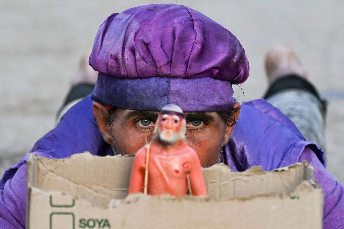 A man looking from behind an image of Saint Lazarus during a pilgrimage to the Sanctuary of San Lazaro in El Rincon, near Havana, Cuba on Dec 16. Every year in Cuba, pilgrims pray to Saint Lazarus if they are Catholics, and to Babalu Aye if they follow Afro-Cuban religions, asking for health, healing from illness and prosperity.