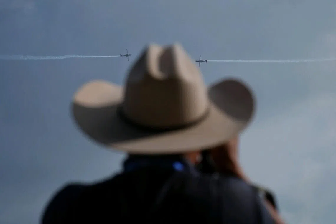 A display of team aerobatics by the KT-1B light attack aircraft from the Indonesian Air Force Jupiter Aerobatic Team during a media preview at Changi Exhibition Centre, Singapore, on Feb 1, 2026.
