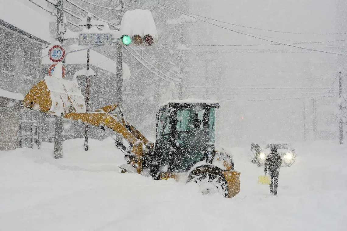 Heavy machinery being used to clear a road in Obihiro city, Hokkaido, as heavy snow falls across northern Japan on Feb 4, 2025.