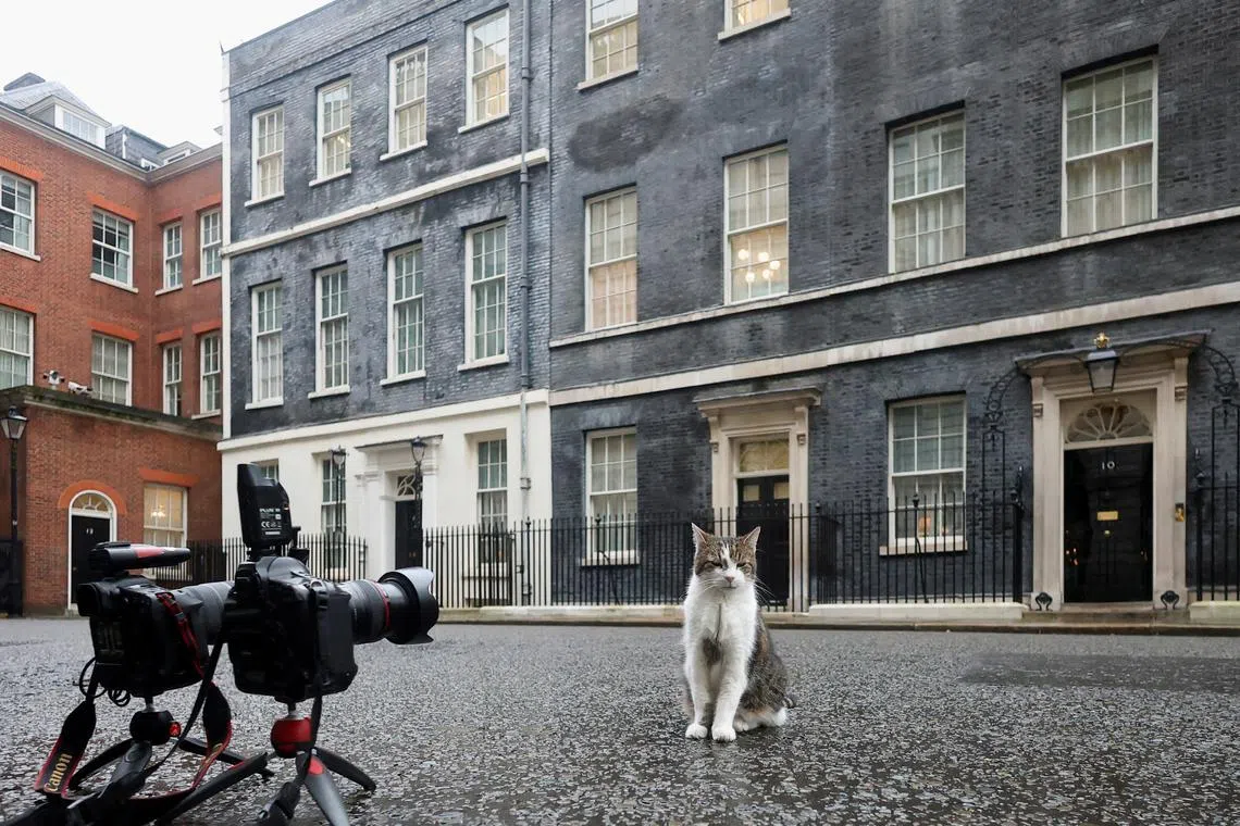 Larry the cat sitting pretty in front of remote cameras outside 10 Downing Street in London on Jan 15, 2025. The 18-year-old tabby has lived at the famous residence during the premierships of six British prime ministers including Mr Keir Starmer.