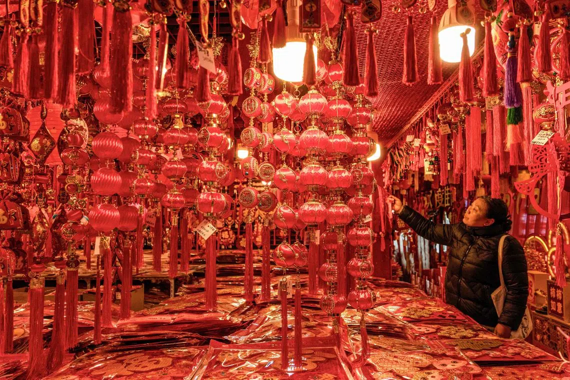 A shopper sifting through Chinese New Year decorations, ahead of the upcoming Year of the Snake, at a store in Nanjing, in eastern China's Jiangsu province on Jan 15, 2025.
