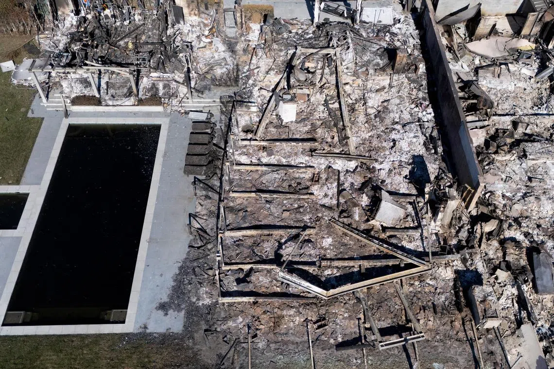 Aerial view of a site taken on Jan 16, 2025, in Malibu, California, where houses were destroyed by the Palisades Fire.