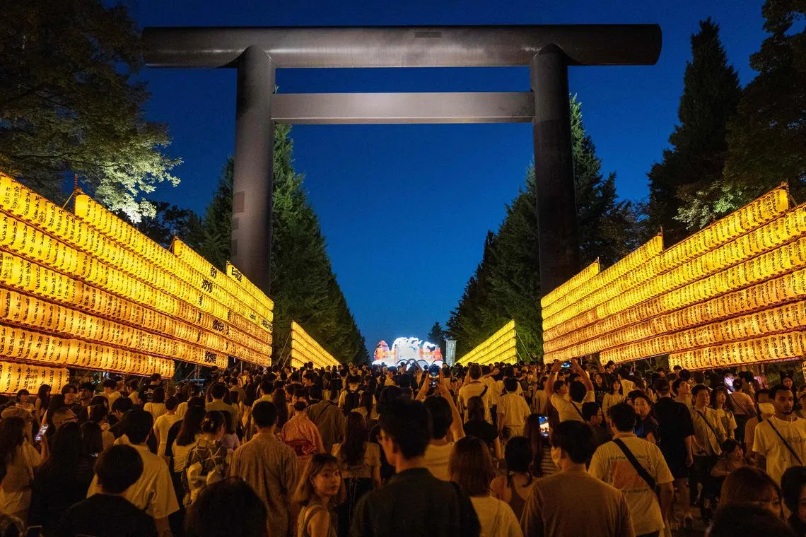People arriving to attend the final day of the four-day Mitama Matsuri, one of the capital's largest summer "Obon" festivals, at Yasukuni Shrine in Tokyo, Japan, on July 16.