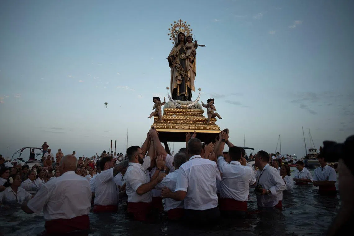 Penitents carrying the statue of the "Virgen del Carmen" during the Carmen Day celebrations in Malaga, southern Spain, on July 16.