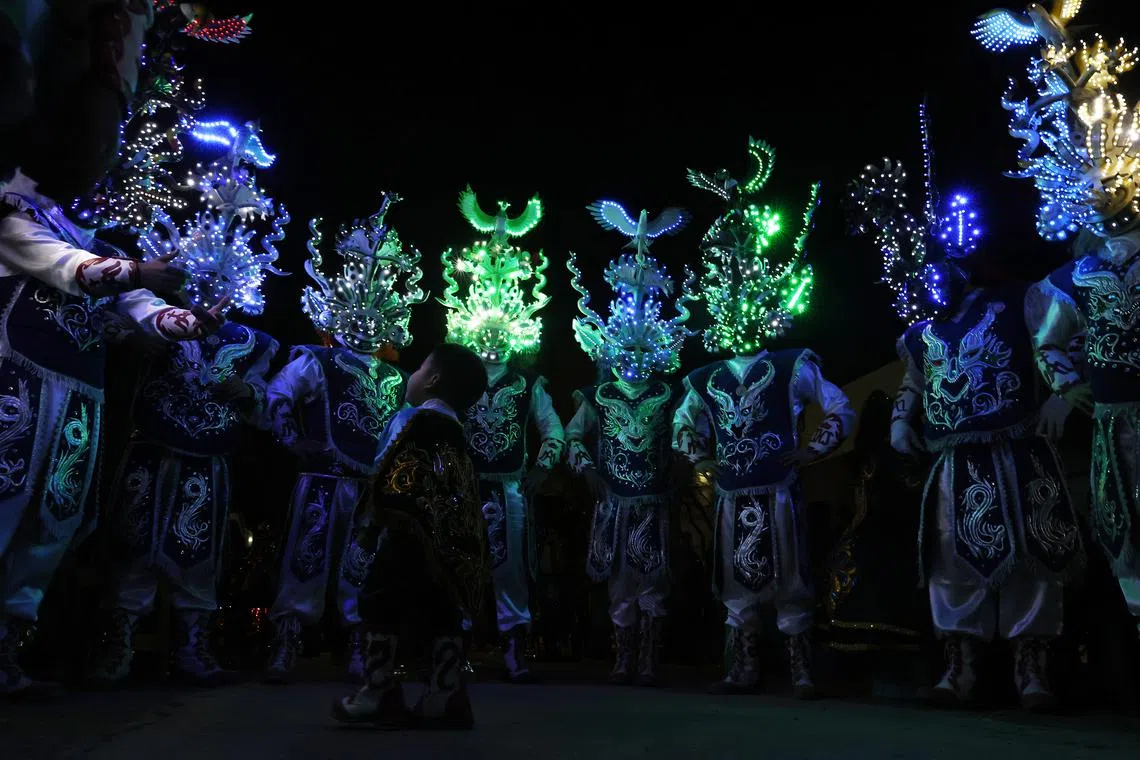 People participating in the celebration of the Fiesta de la Tirana, in the town of La Tirana, commune of Pozo Almonte, Tarapaca Region, Chile, on July 16. The celebration takes place every July 16 in honour of the Virgen del Carmen.