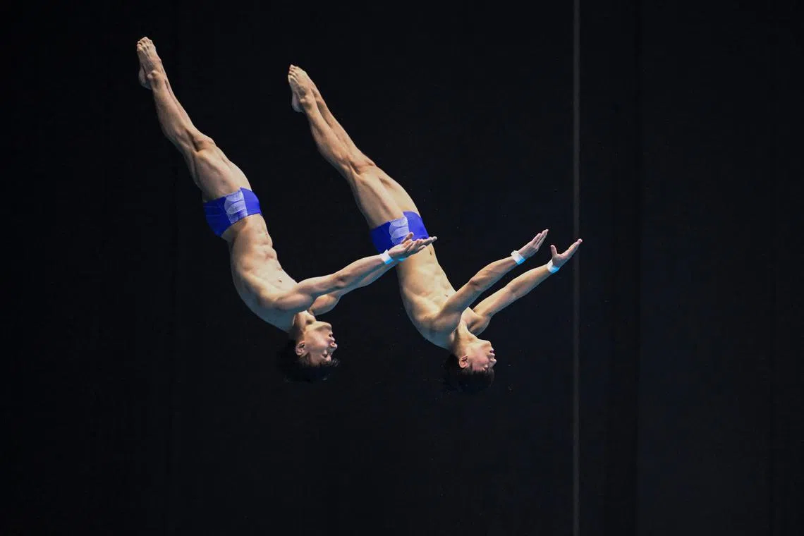South Korea's Kim Yeong-taek and Yi Jaeg-yeong competing in the preliminary of the men's 10m synchronised diving event during the World Aquatics Championships in Fukuoka, Japan, on July 17.