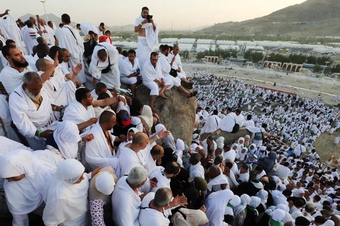 Muslim pilgrims gathering on the Mount of Mercy at the plain of Arafat during the annual haj pilgrimage, outside the holy city of Mecca, Saudi Arabia, on June 27, 2023.