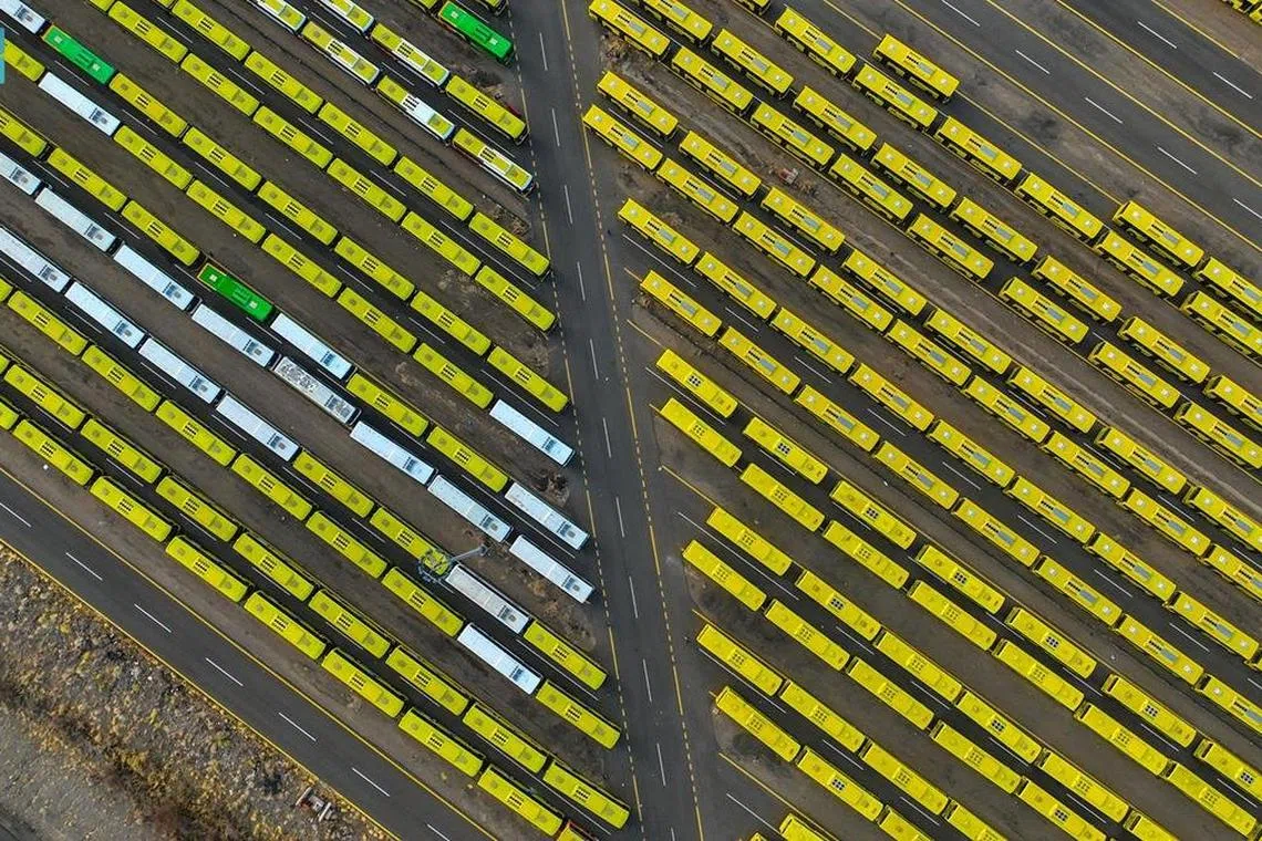 A handout picture provided by the Saudi Press Agency, on June 26, 2023, showing buses, which are used to transport pilgrims, parked at a station in the holy city of Mecca, during the annual Haj pilgrimage.