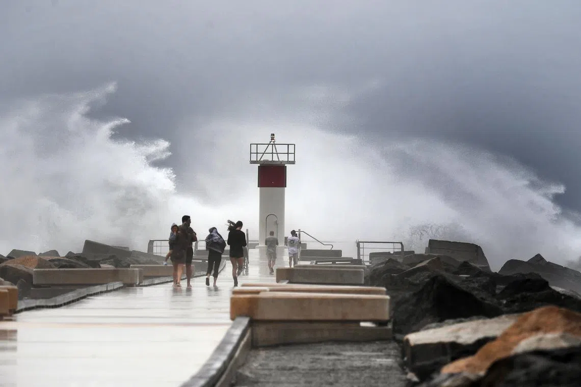 Onlookers observing the weather at the Seaway in the Gold Coast, Australia, on March 3, 2025. The Queensland government issued a warning for the expected landfall of tropical cyclone Alfred.