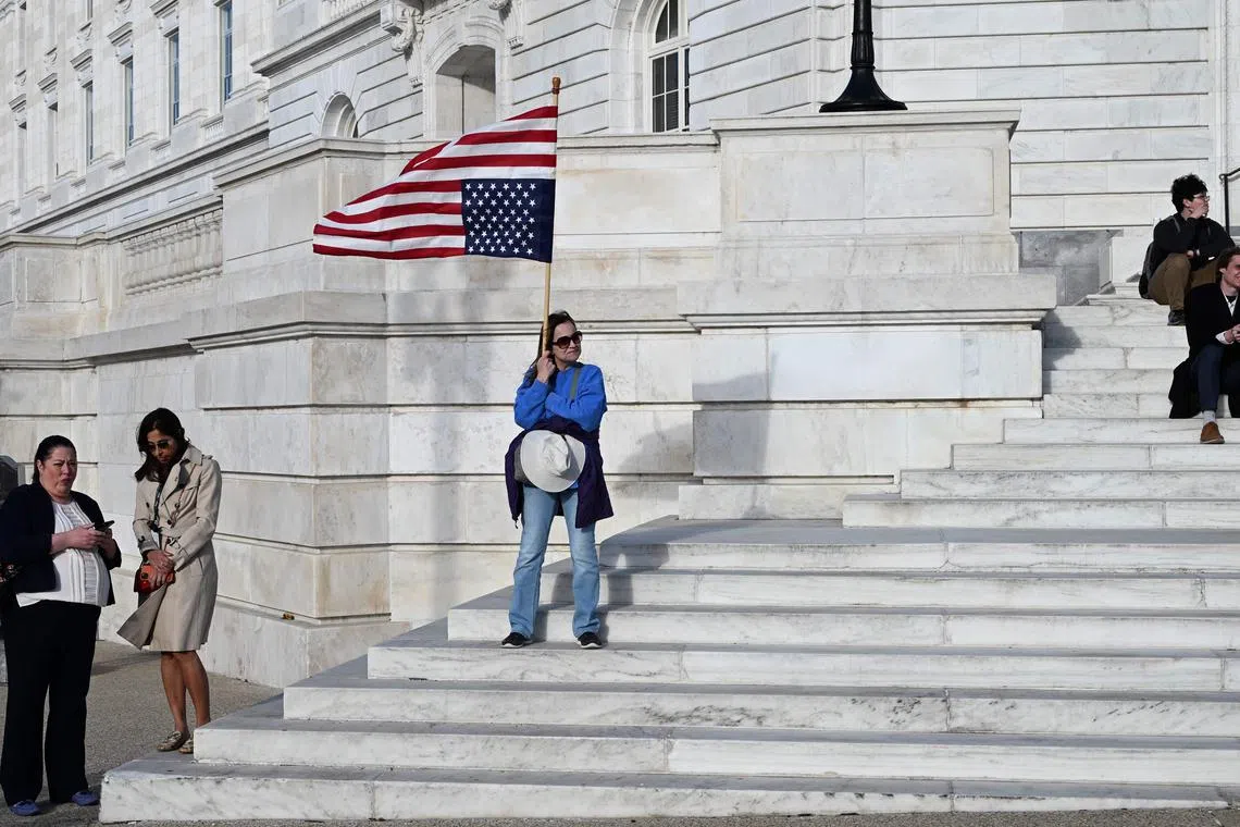People gathering on Capitol Hill during a protest against US President Donald Trump before his address to a joint session of Congress in Washington on March 4, 2025.