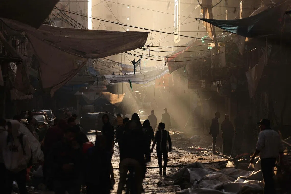 Palestinians surveying the damage following the early morning Israeli bombardment of Khan Yunis in southern Gaza Strip on Nov 15, amid the ongoing battles between Israel and Hamas.