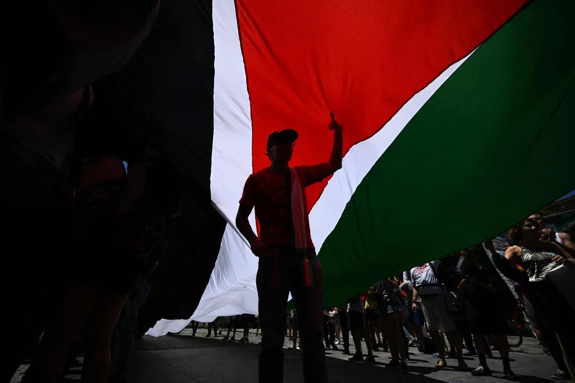 Locals taking part in a demonstration in support of the Palestinian people in Gaza at the Cinelandia Square during the Group of 20 leaders' summit in Rio de Janeiro, Brazil, on Nov 18, 2024.