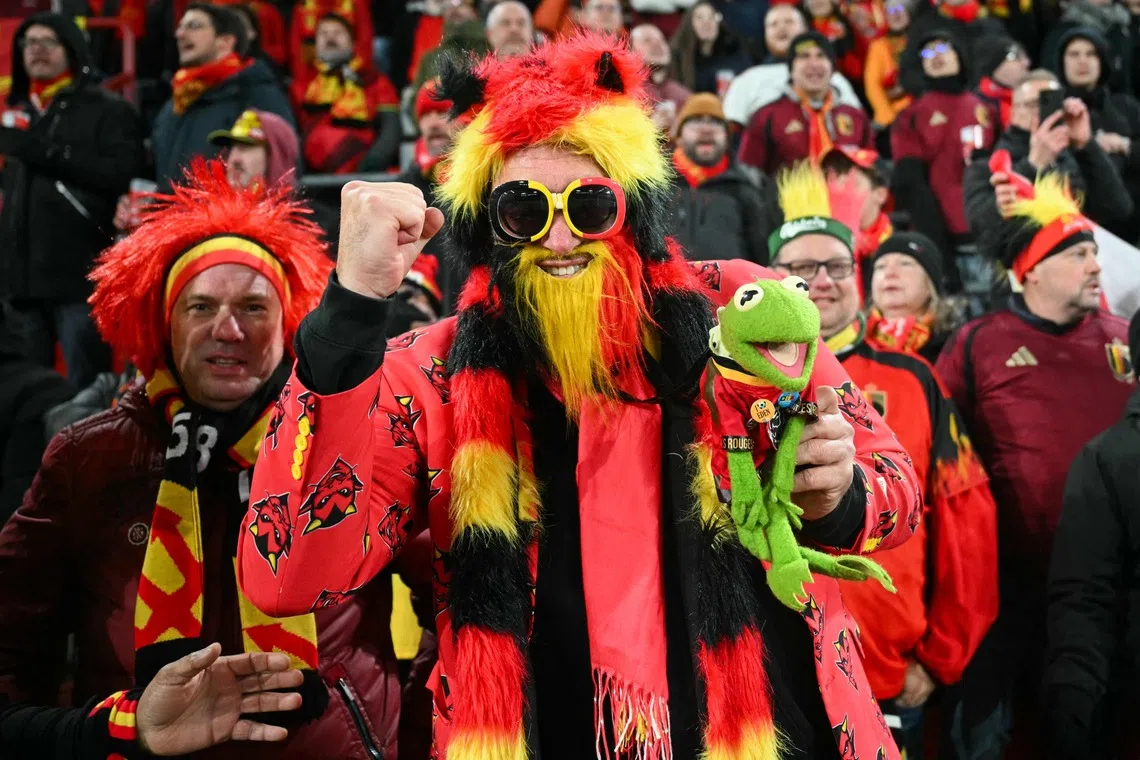 Belgian supporters cheering ahead of the Fifa World Cup 2026 Group J European qualification football match between Belgium and Liechtenstein at the Maurice-Dufrasne stadium, in Liege, Belgium, on Nov 18, 2025.
