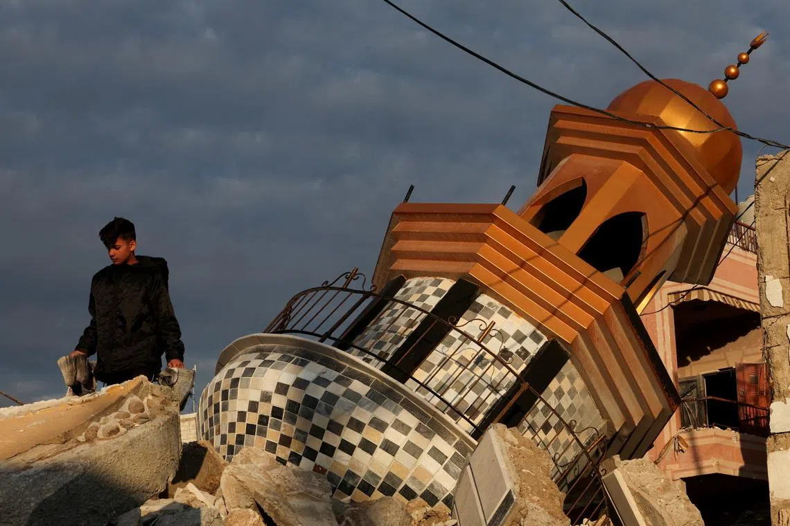 A boy walking near a minaret of a damaged mosque in Tayr Debba, southern Lebanon, on Nov 28, 2024, the second day of the ceasefire between Israel and Iran-backed group Hezbollah.