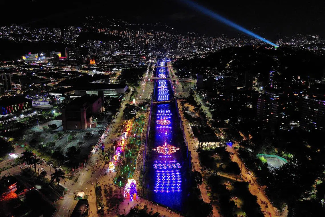 Aerial view of the traditional Christmas lights in Medellin, Colombia, taken on Nov 28, 2024. This year's theme is a giant Nativity scene that will participating in the Guinness World Records.