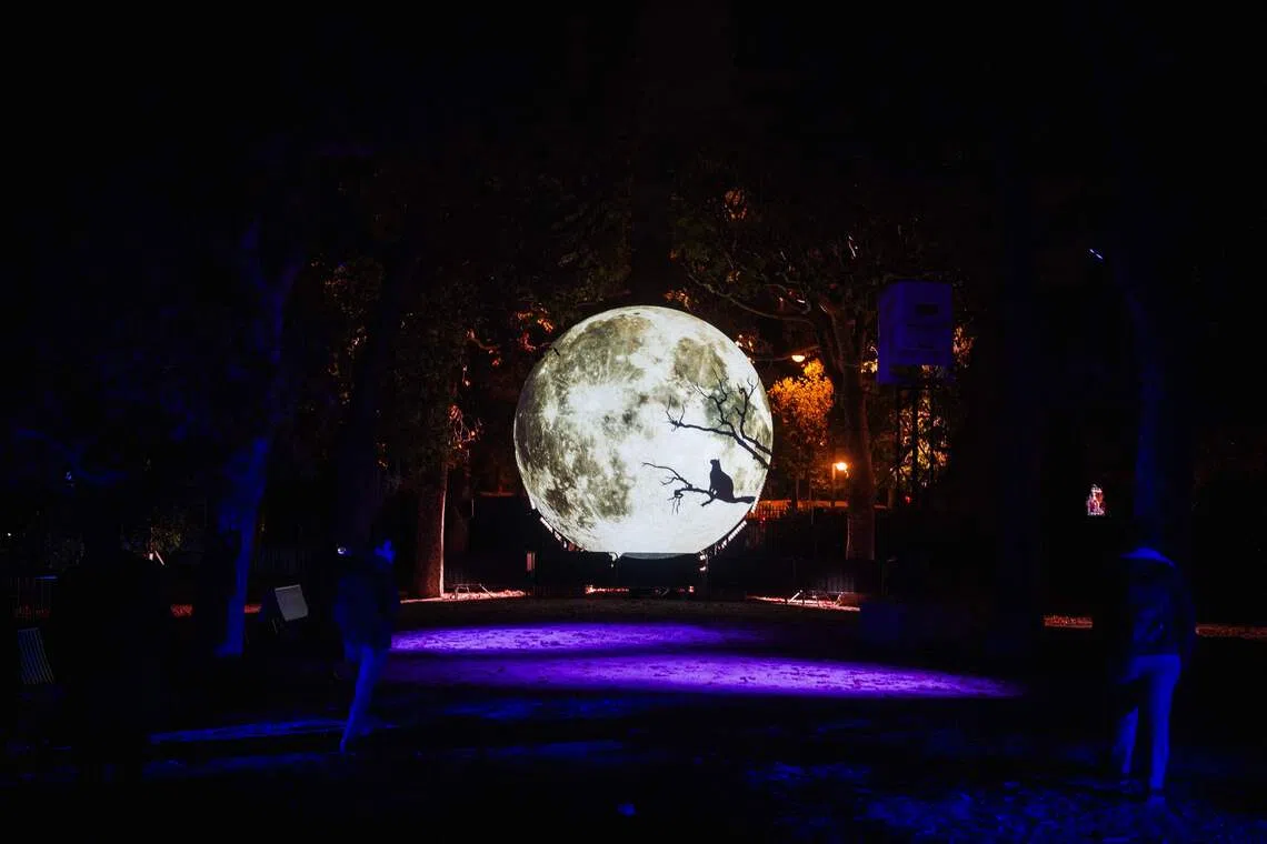 Visitors looking at a light structure during a press preview of the exhibition titled Lights Of Nature at the Jardin des Plantes in Paris, France, on Nov 5, 2025.