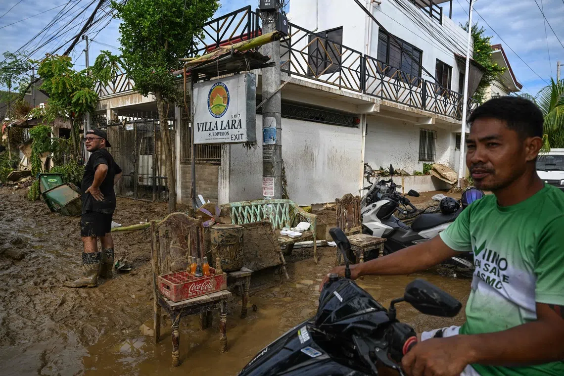 A resident standing next to damaged furniture as he cleans his home in the aftermath of Typhoon Kalmaegi in Liloan in the province of Cebu on Nov 6, 2025. Typhoon Kalmaegi killed at least 140 people and 127 are missing after unleashing devastating flooding across central Philippines.