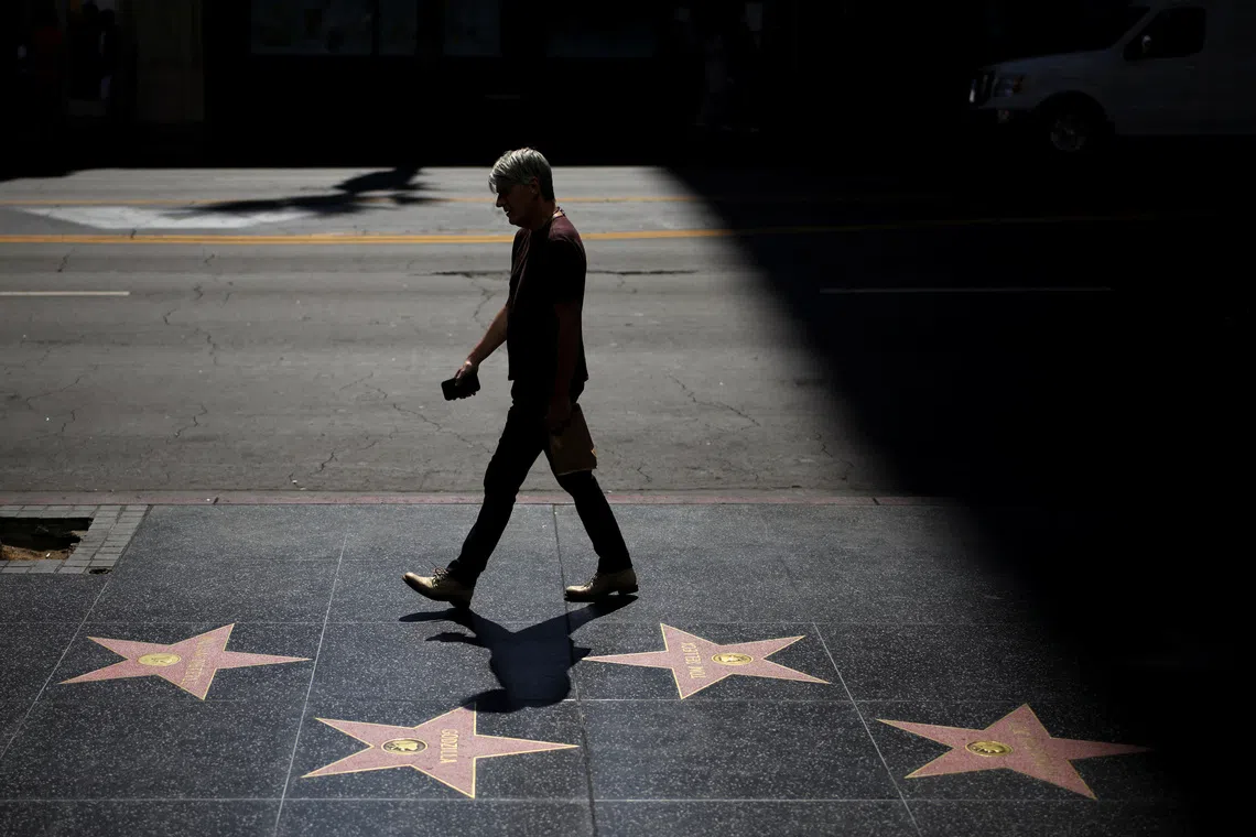 A visitor walking along the Hollywood Walk of Fame after US President Donald Trump ordered a 100 per cent tariff on foreign-made films, in Los Angeles, California, on Sept 29, 2025.