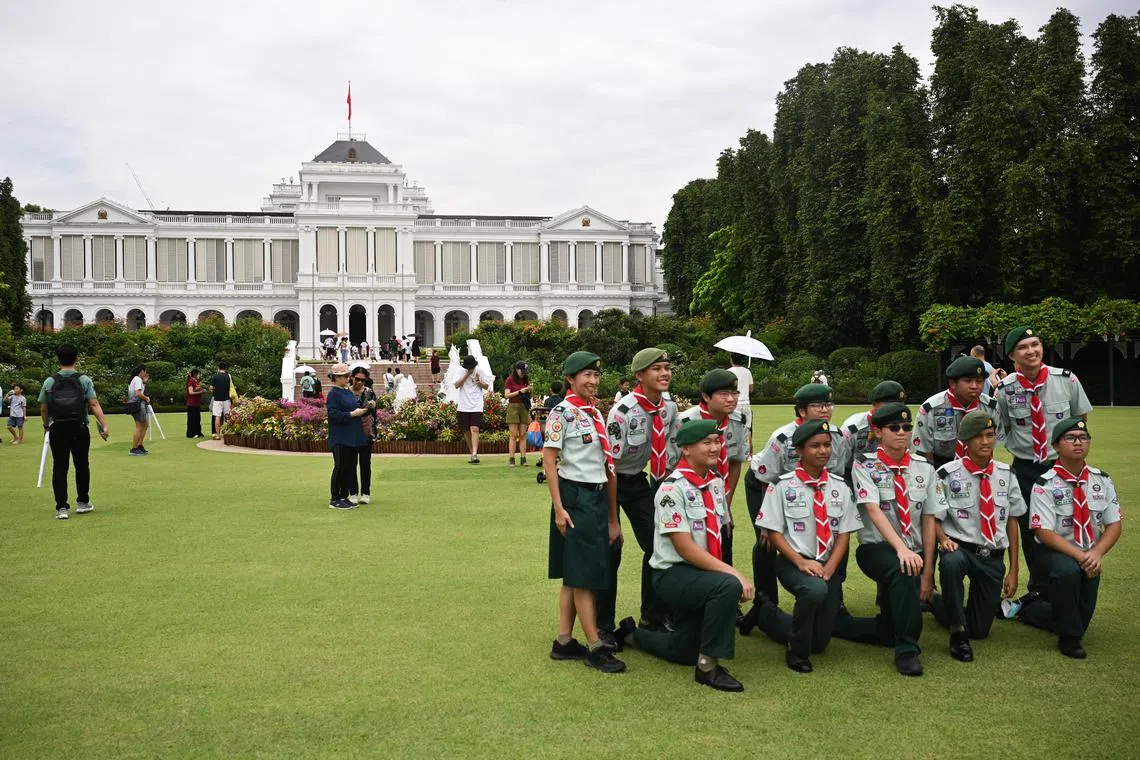 Members of the public posing for photos in front of the Main Building during the Deepavali Istana Open House on Oct 20, 2024 in Singapore. The Istana is typically open to the public on five days during the year.