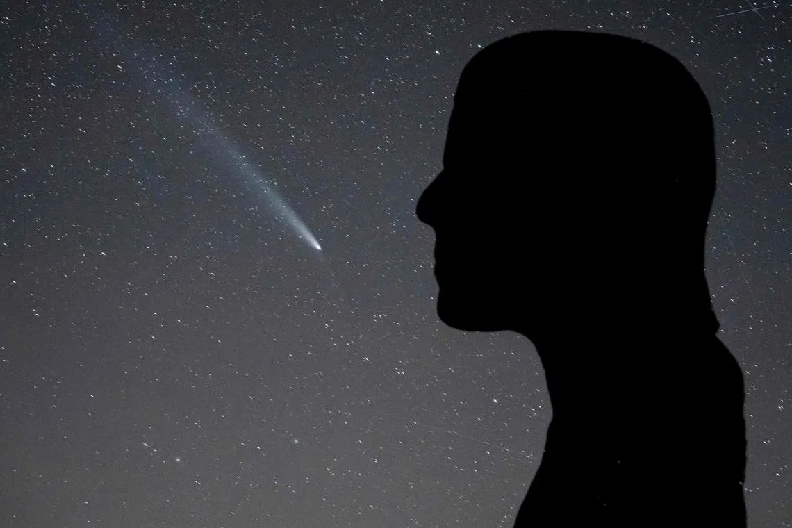 Comet C/2023 A3 - Tsuchinshan-Atlas, or the "Comet of the Century", is seen in the sky above the Dodekalitten art installation in Lolland, Denmark, on Oct 22, 2024.