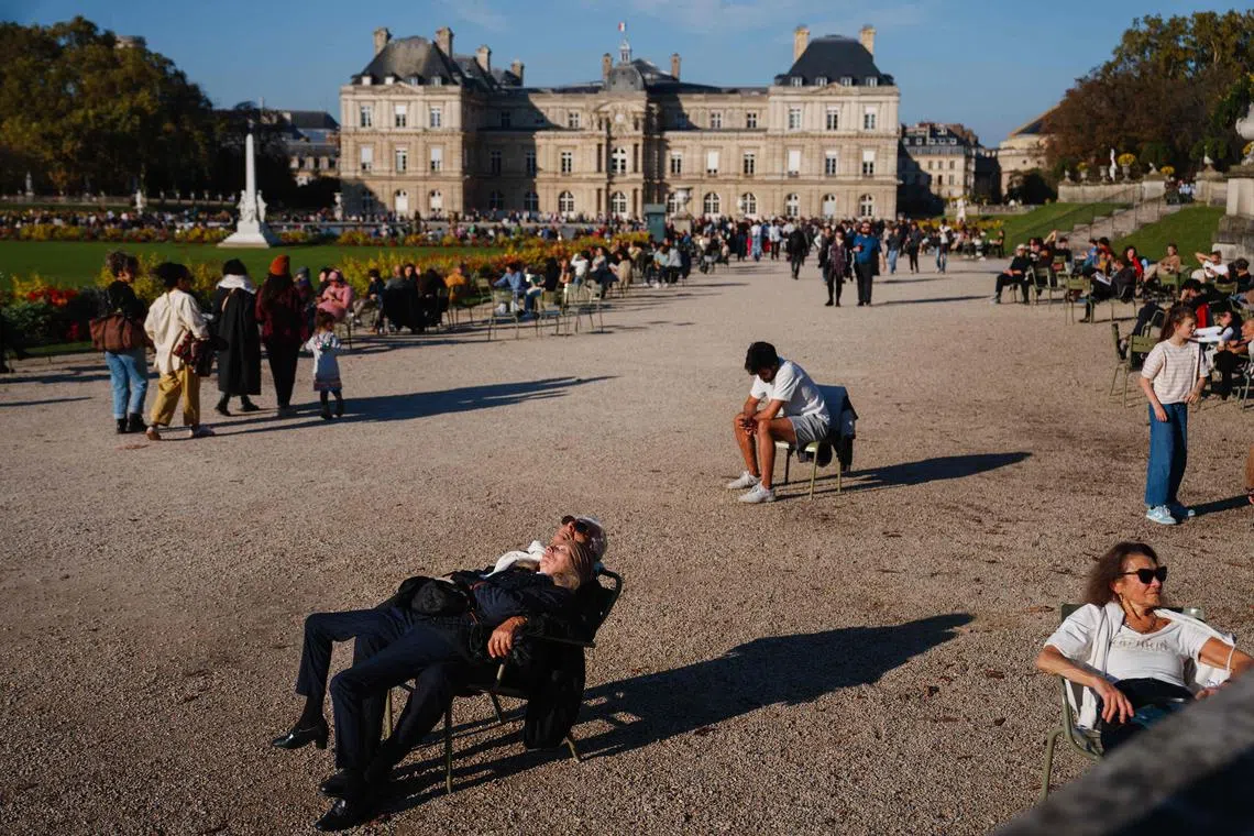 People resting and sunbathing in open areas of the Jardin du Luxembourg in Paris, France, on Oct 24, 2024.