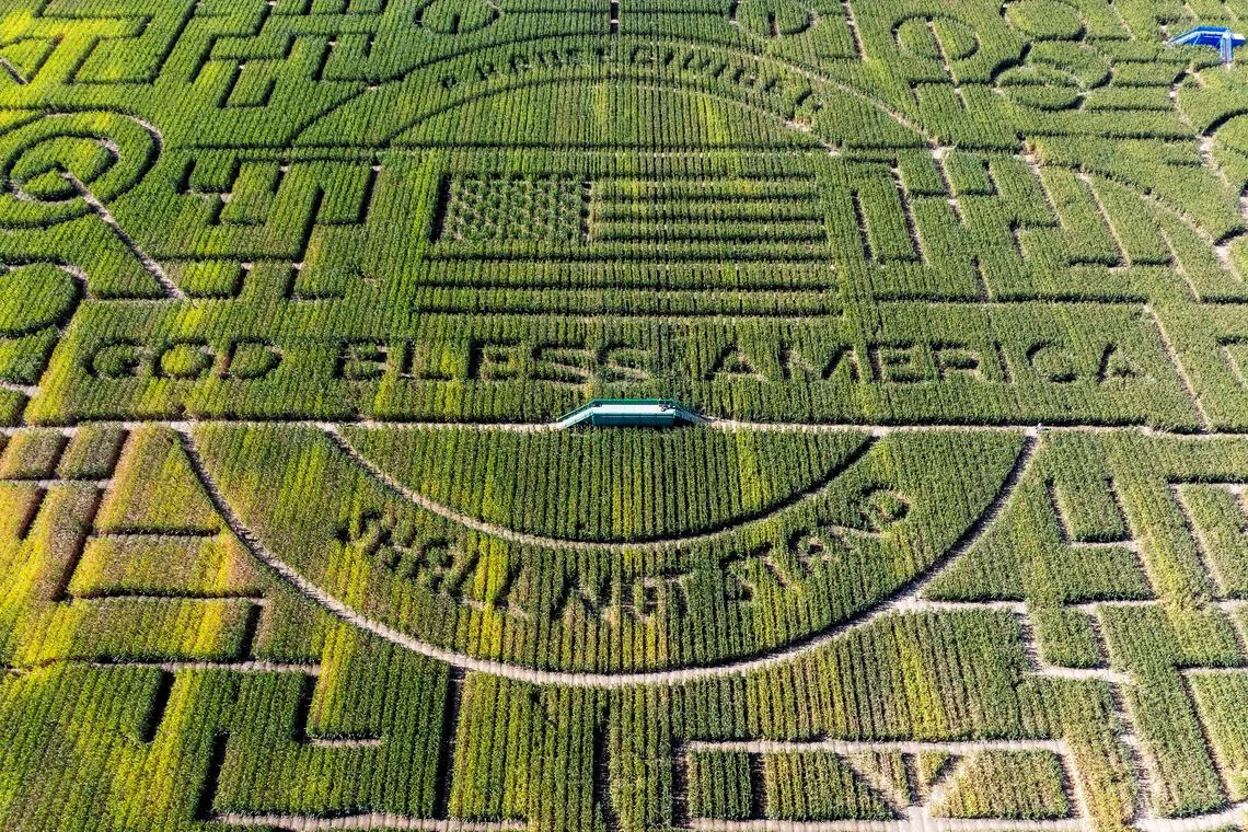 A drone view of one of the world’s largest corn mazes at Cool Patch Pumpkins in Dixon, California, on Oct 24, 2024.
