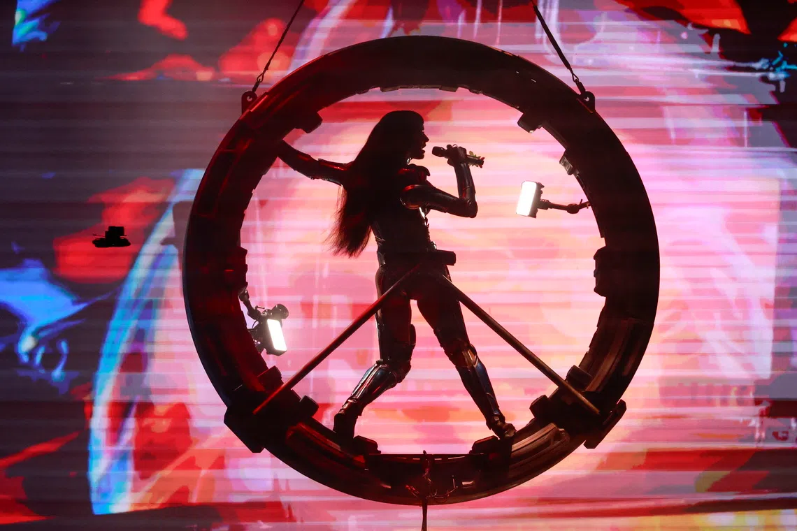 America pop star Katy Perry performing on stage during "The Town" music festival in Sao Paulo, Brazil, on Sept 15, 2025.