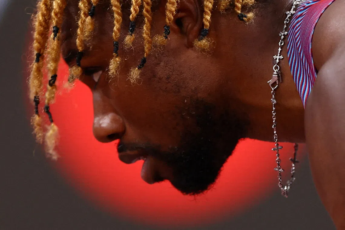 US athlete Noah Lyles preparing for his men’s 200m round 1 race at the World Athletics Championships at the Japan National Stadium in Tokyo on Sept 17, 2025.