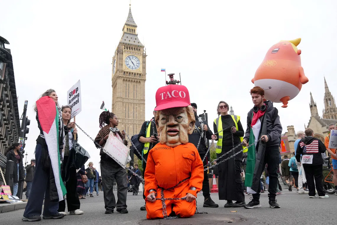A protestor wearing a costume of US President Donald Trump while taking part in a "Trump Not Welcome" protest and rally during the US leader's state visit to London on Sept 17, 2025.