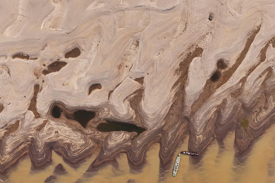 A drone view shows sandbanks due to the worst in history drought affecting the Madeira River in Humaita, Amazonas state, Brazil, on Sept 4, 2024.
