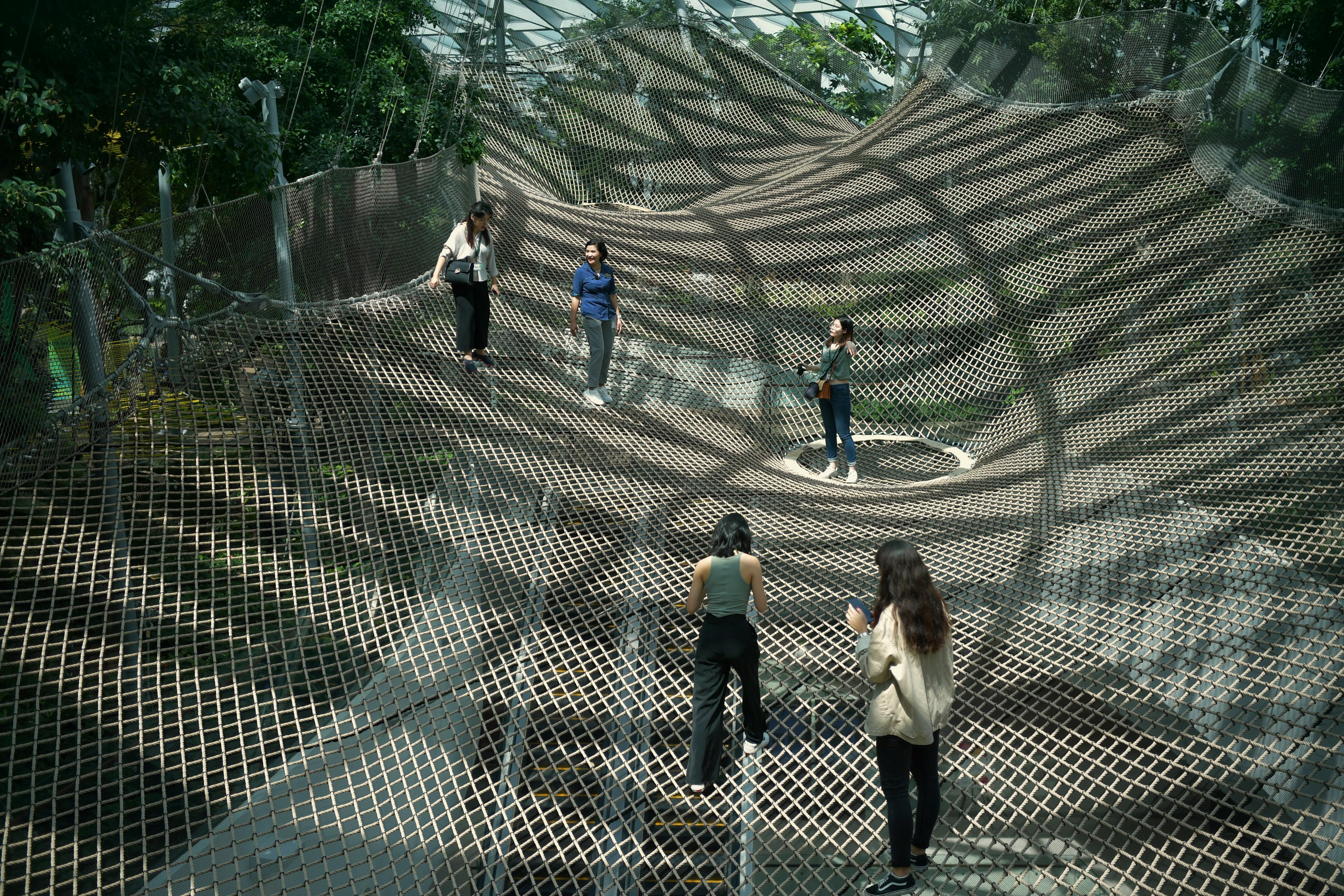 The Changi Airport attraction is a giant net suspended 25m above ground that visitors can walk on.